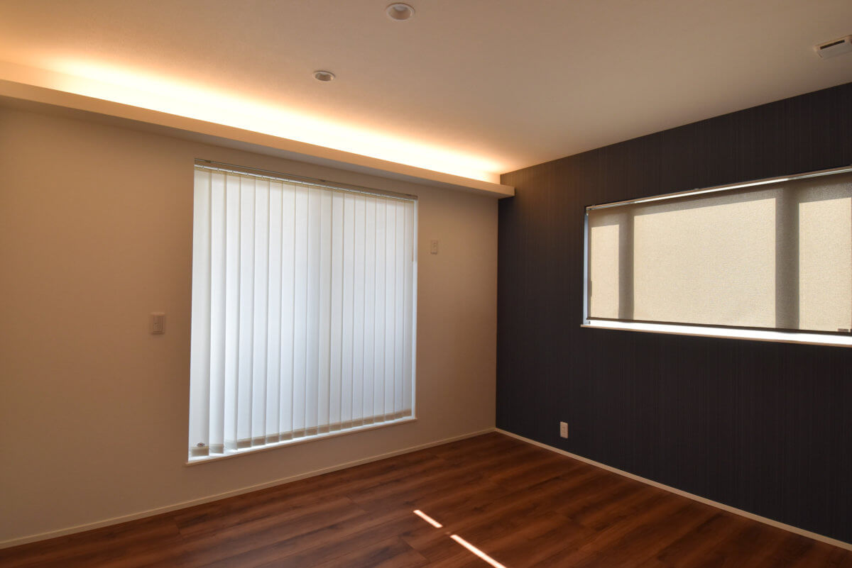 一日の終わりを過ごす寝室も、柔らかな光が包み込む落ち着きのある仕上がりに。細部まで手を抜かない造作と光の設計が、暮らしをより豊かに彩ります。大人が本気で楽しむための、こだわり抜いた空間づくりをぜひご覧ください。
