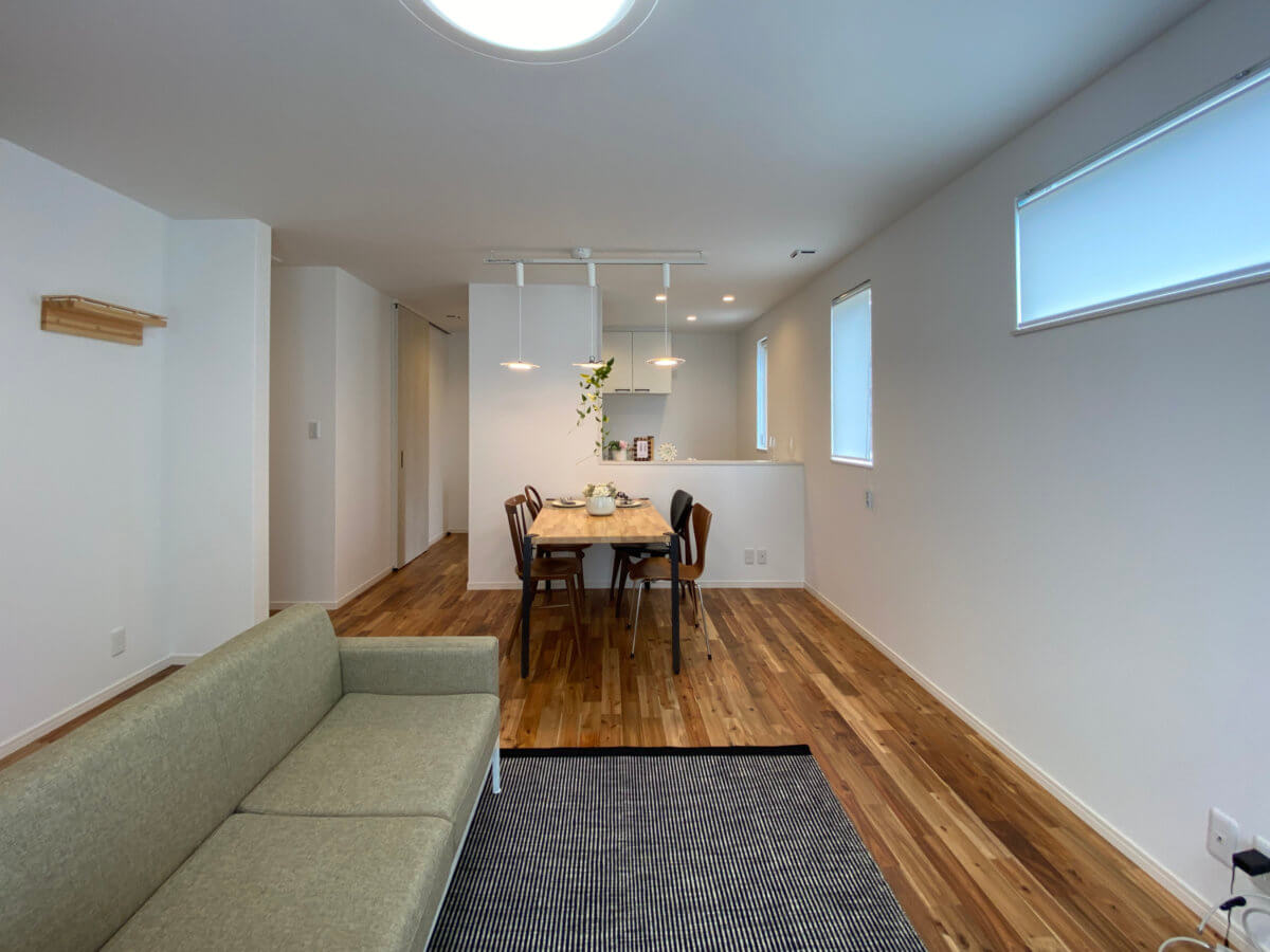 この家の魅力は、多様なライフスタイルや新しい生活様式に柔軟に対応できる、キャンバスのような自由な間取りです。室内は、お気に入りのインテリア小物や木製家具が美しく映えるシンプルなデザイン。将来のライフステージの変化に合わせて、自由に模様替えや使い方の変更ができるフリースペースも確保しました。