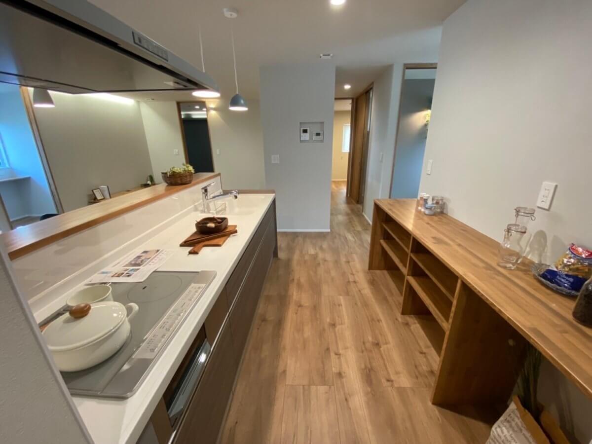 住まいの顔となる玄関ホールからは、四季を感じる中庭を望むことができ、毎日家族をあたたかく迎えます。限られたスペースを最大限に活かすため、家事動線を最小限に集約した「コンパクト動線」を採用。日々の暮らしにゆとりを生む、機能的な設計が魅力です。