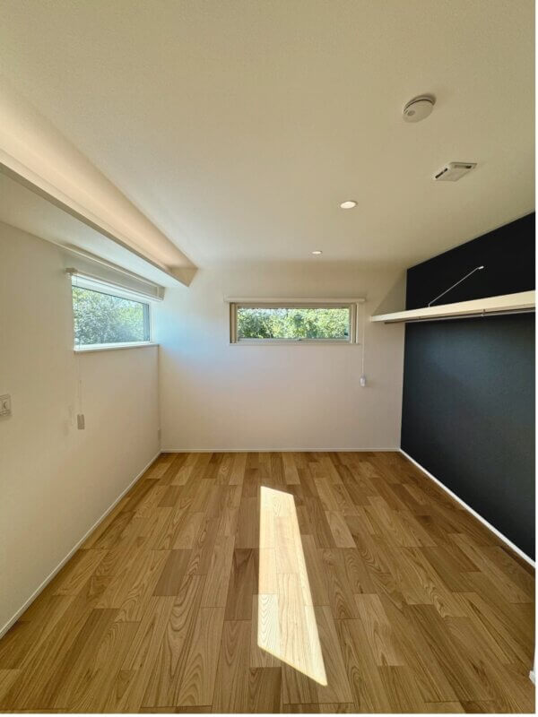 内装には、空間に奥行きとお洒落な表情を与えるアクセントクロスを効果的に配置。寝室の隣には、自分時間に集中できる書斎も確保しました。家族との繋がりを感じられる大空間と、それぞれの暮らしを豊かにする機能性が共存する、心地よい一邸です。
