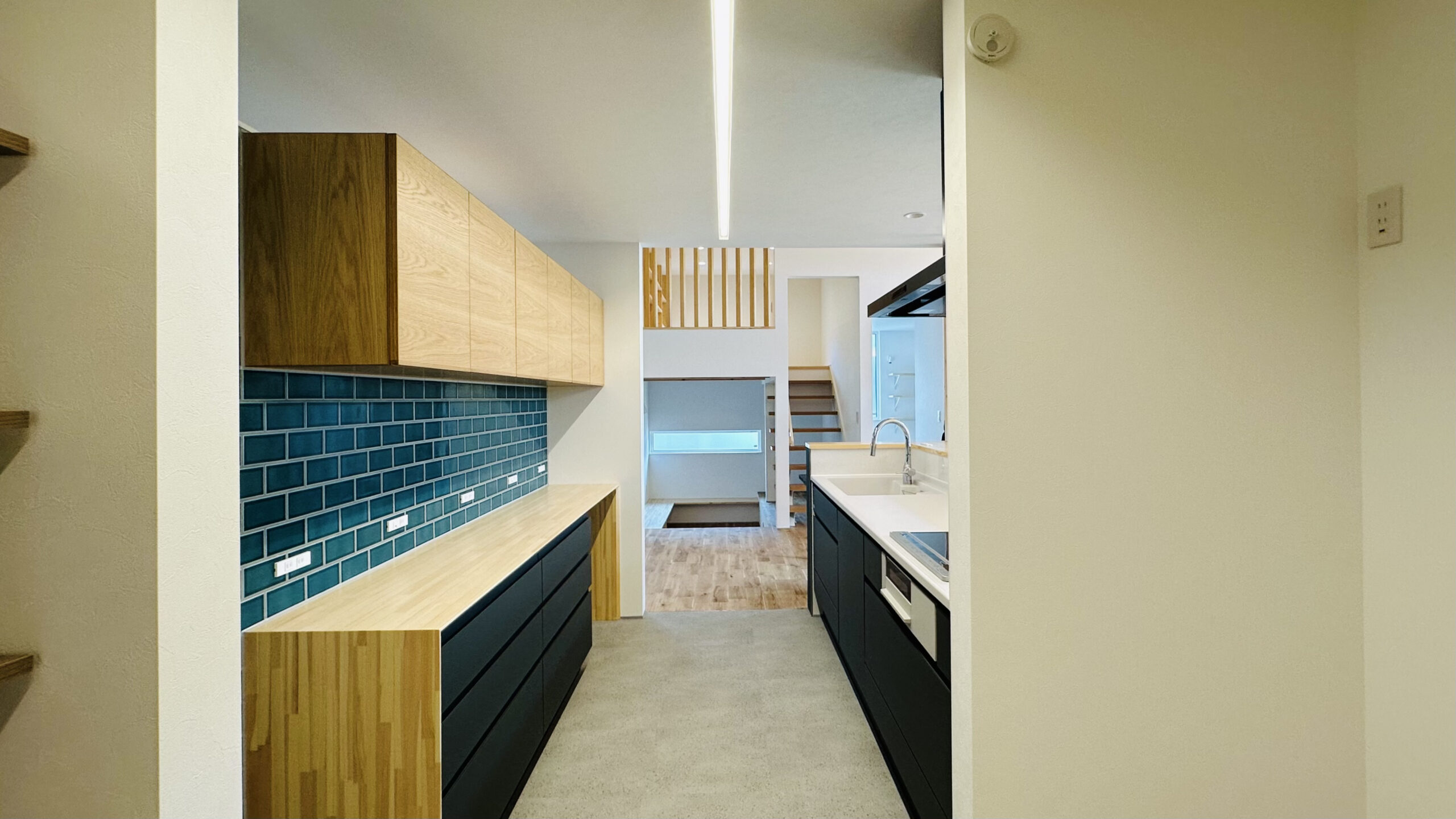 カフェで過ごすような心地よさを自宅でも味わえる、くつろぎを大切にした住まいが完成しました。木の温もりを感じられる空間をベースに、タイルや色味で程よくアクセントを加えることで、やさしさと洗練さを併せ持つインテリアに仕上げています。