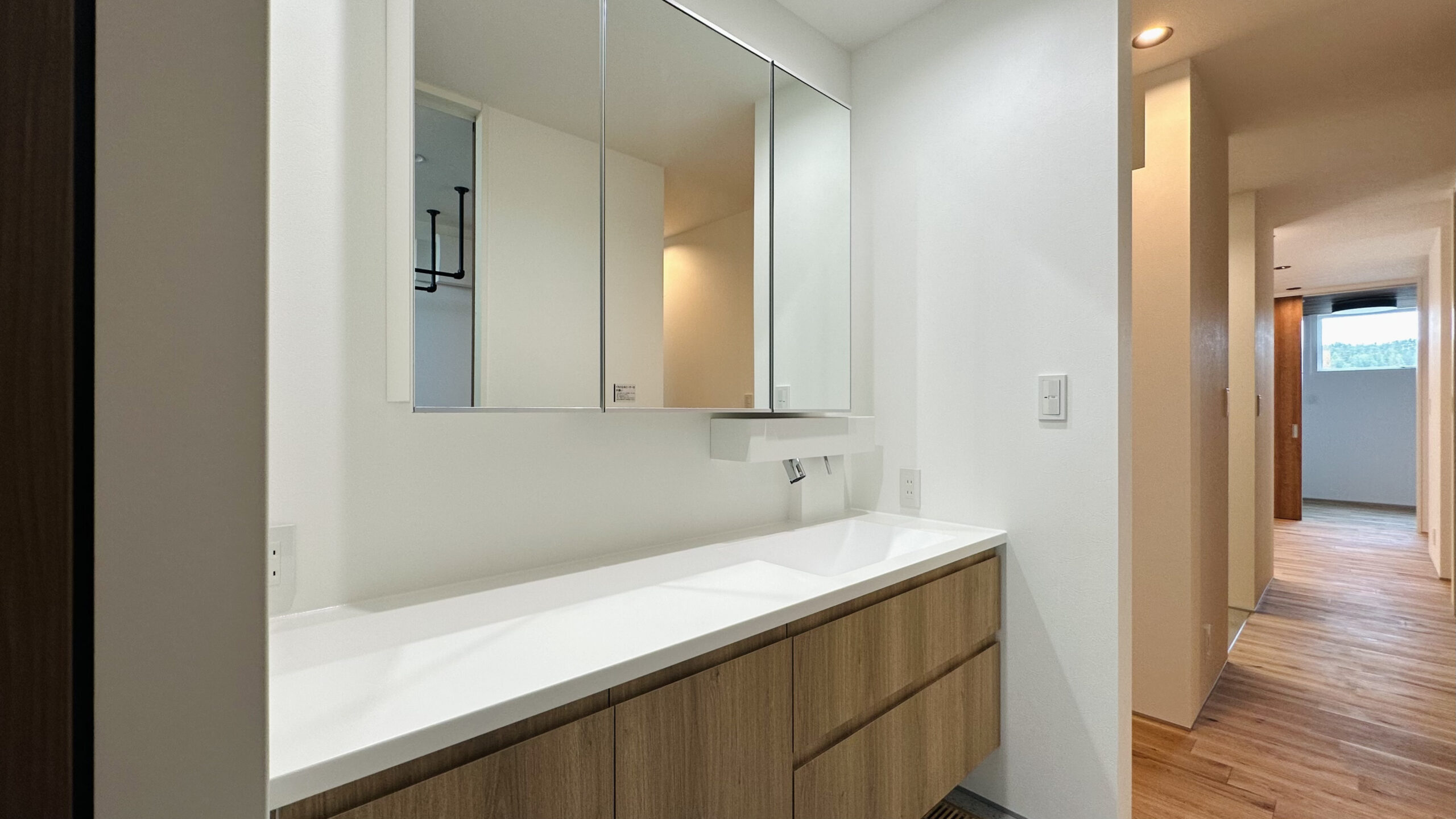 ガレージ直結の動線や防犯性にも配慮し、日常の使いやすさも確保。住まいの一角には、自宅サロンとして活用できるスペースも設け、暮らしに寄り添う柔軟な住まいとなっています。