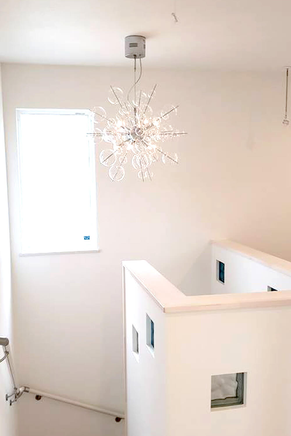 清潔感あふれる白い壁が印象的なリビングには、外からの柔らかな光がたっぷりと差し込み、主役であるこだわりのソファをより一層引き立てます。家族が毎日集うキッチンとダイニングも、明るく広々とした設計で開放感抜群。さらに、天井の高い階段スペースでは、計算された照明の陰影とアクセントのカラフルな窓が絶妙な調和を見せ、住まい全体の個性を際立たせています。暮らしの隅々までこだわりを詰め込んだ、理想の邸です。