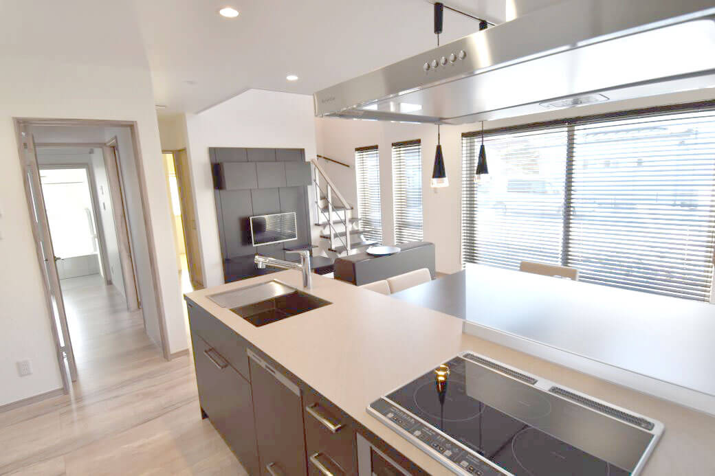最大の見どころは、開放感あふれる吹き抜け空間です。ふんだんに使用された木が温もりを演出し、家全体を優しく包み込みます。リビング全体を見渡せるオープンキッチンは、家族との繋がりを大切にした設計となっており、家事をしながらでも会話が弾みます。